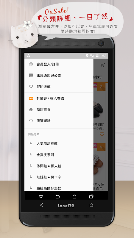 超清晰美鞋大圖,手機任意逛;不管是40-45碼的甜心都能在這裡找到適合妳的美鞋喔。Lane172不定時推出限定優惠活動,app會自動推播訊息,美麗的大碼女孩們千萬不要錯過喔。