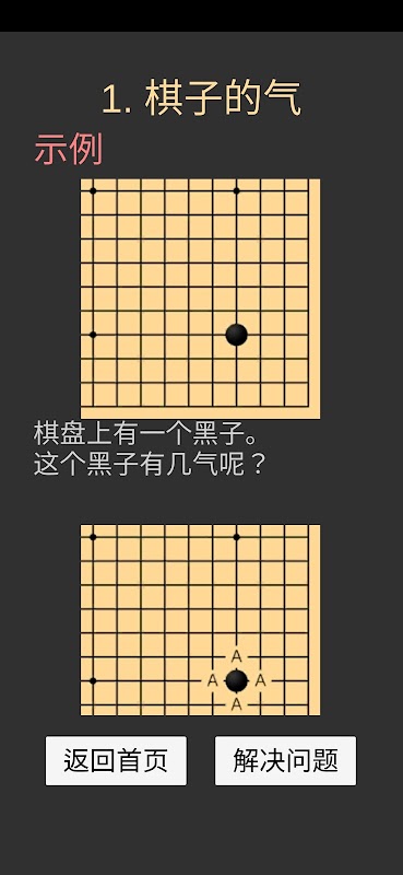 É composto por 21 unidades e 246 perguntas, que podem ajudar os novos jogadores de Go a praticar os problemas de Go.