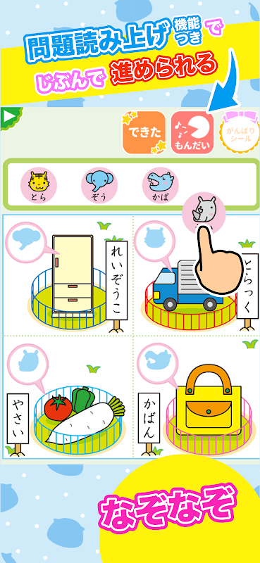 Se você praticar bem, receberá um "Adesivo Ganbari". Os adesivos se acumulam no livro de adesivos e podem ser verificados a qualquer momento.