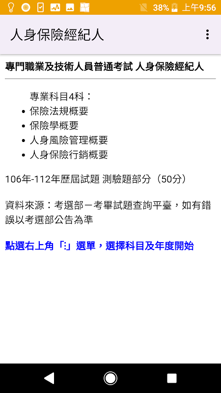 Informações sobre 專技普考人身保險經紀人歷屆試題2023 APK