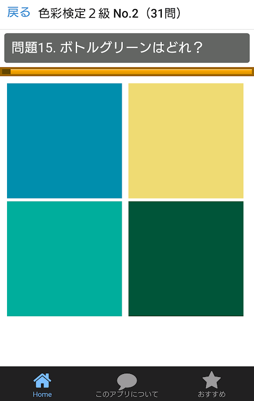 問題文の慣用色名の色を選択肢の画像の中から答えるクイズです。