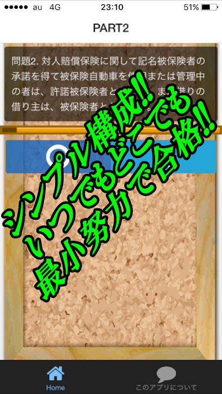 このアプリは、損保一般商品単位試験に効率的に合格できるよう、過去問をクイズ形式でまとめました。