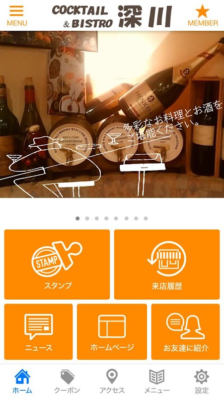 このアプリでは、カクテル&ビストロ深川の色々な情報やアプリユーザー限定のお得なサービスが手に入ります!