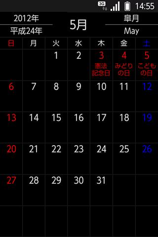 É um calendário simples. operação Flick e, desde a tela de configuração Você pode ser exibido por mudar o "feriado", "Roku 曜", "velho", "ícone memo".