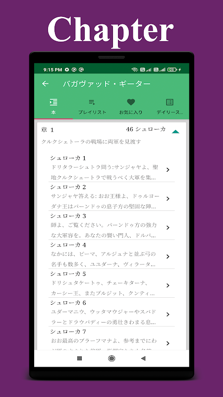 The app has many features to facilitate the reader with utmost comfort and ease to read the contents of Japanese Bhagavad Gita. Some of the features are as follows:
