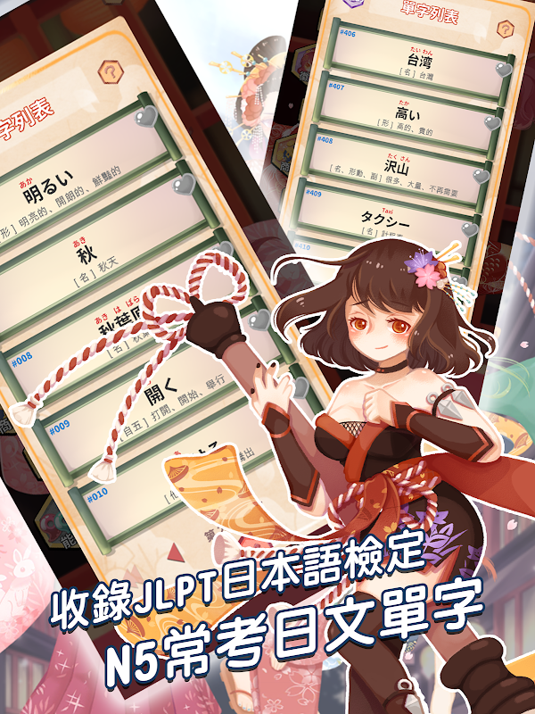 ✓ Um grande número de N5 Verificação japonesa palavras comuns está incluído.