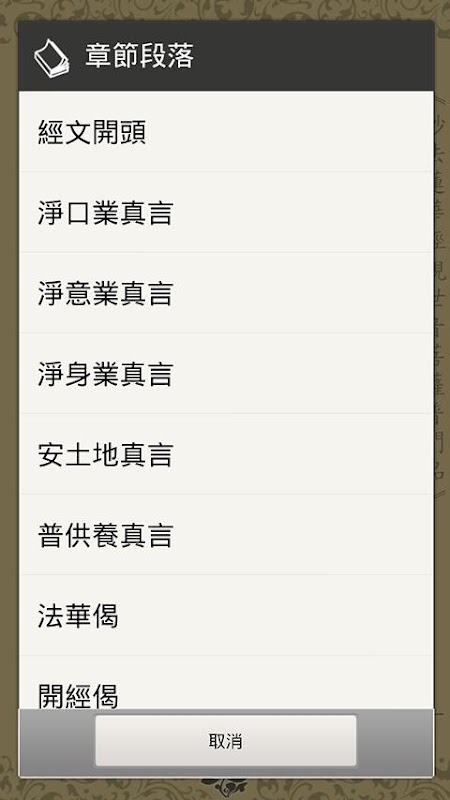除了精緻的文字顯示,本程式提供了經咒念誦的功能,並且於每個章節經句章節細心的引導你,免除了紙本經本使用上,初發心的菩薩們常會遇到的問題,如跟不上、找不到等等的問題影響持誦的順暢。