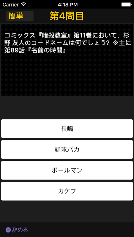本アプリでは大人気『暗殺教室』に関するクイズを四択形式で出題!!