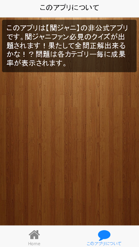 このアプリは【関ジャニ】の非公式アプリです。関ジャニファン必見のクイズが出題されます!果たして全問正解出来るかな!?