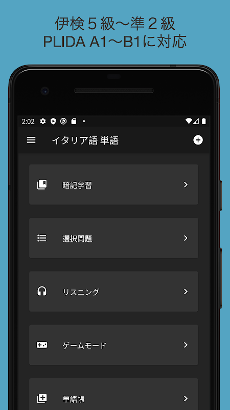 イタリア語学習者(初級〜中級)にとっての重要単語を学ぶためのアプリです。約1500語収録、イタリア語検定(伊検)5級〜準2級、PLIDA:A1〜B1
