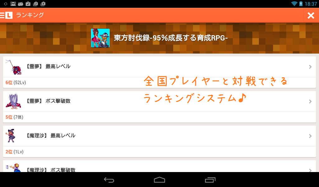 成長させたキャラクターは全国のプレイヤーとランキングを競うことができるよ♪