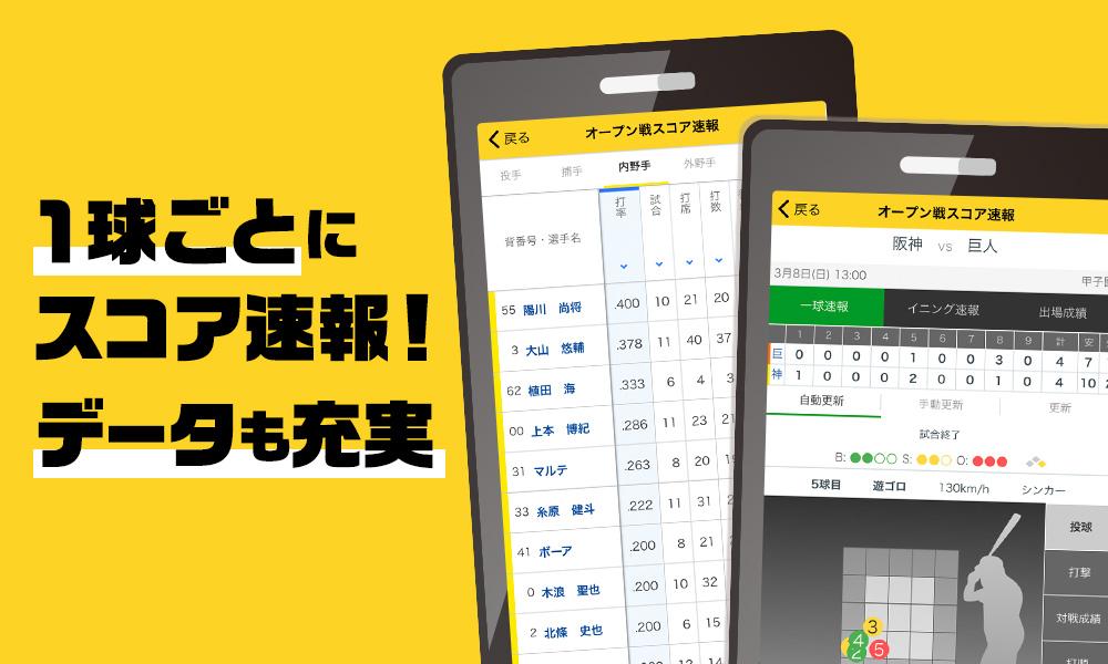 プロ野球(NPB)のスコア速報は阪神タイガース以外の試合も一球速報で表示。
