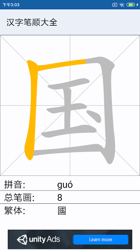 以动画形式展示汉字笔顺,帮助用户学习汉字笔顺