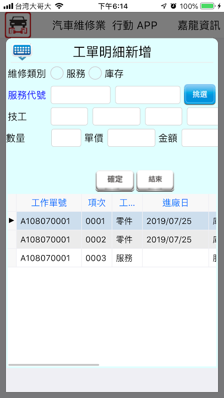 Consulta de carro Abertura da ordem de serviço Controle de manutenção Inspeção final da ordem de serviço Proteção de segurança