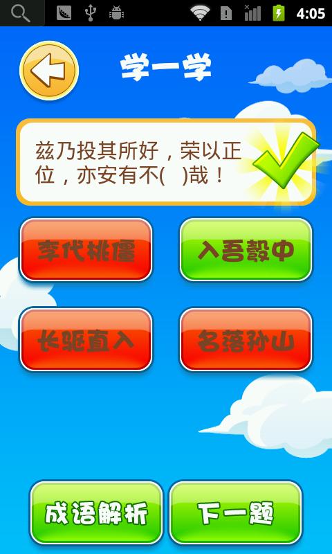 轻松游戏,快乐学习,成语学游,学习成语的小助手!