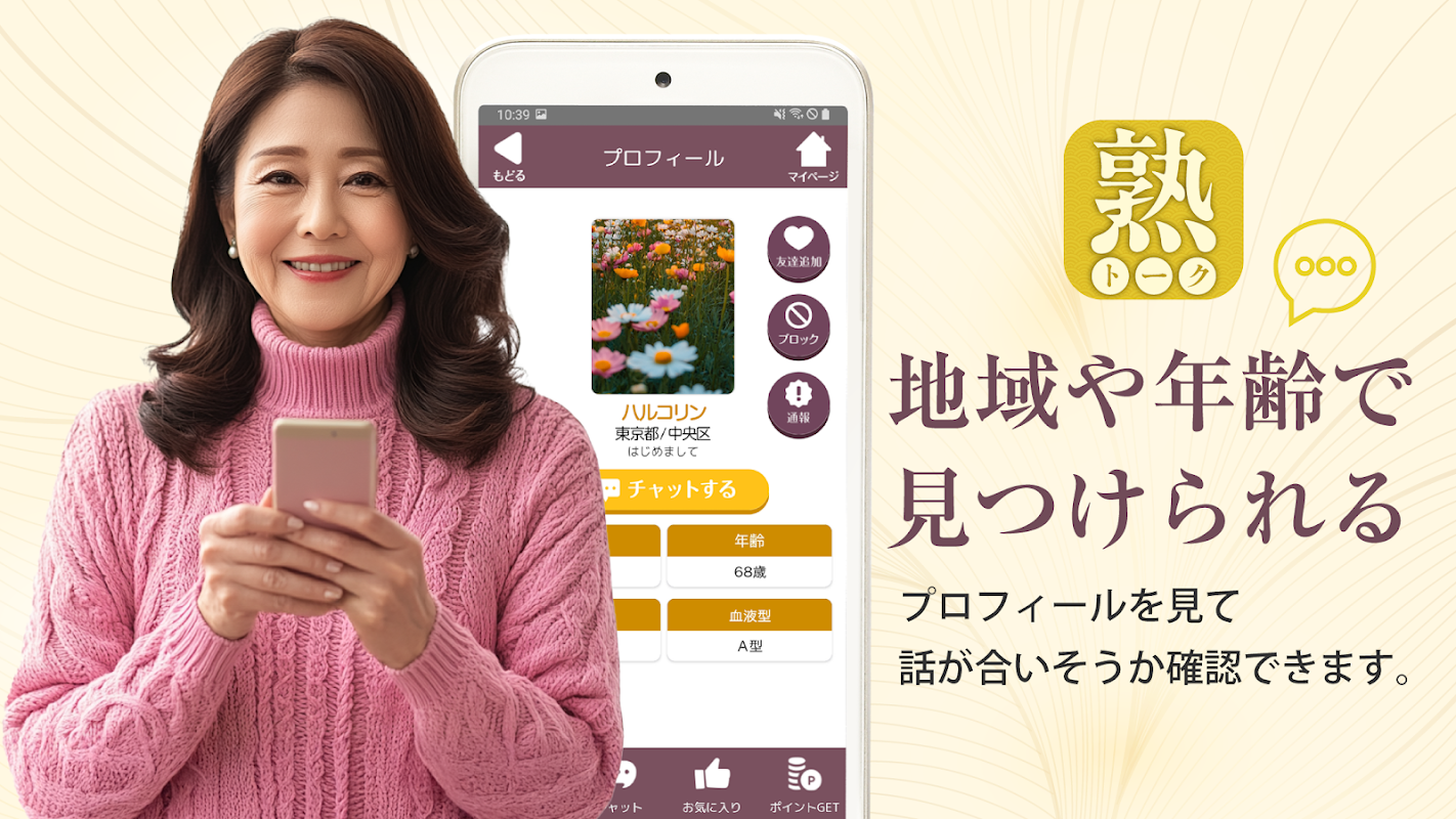 Sobre este 熟トーク - 熟年シニア同士で心温まるご近所チャットアプリ