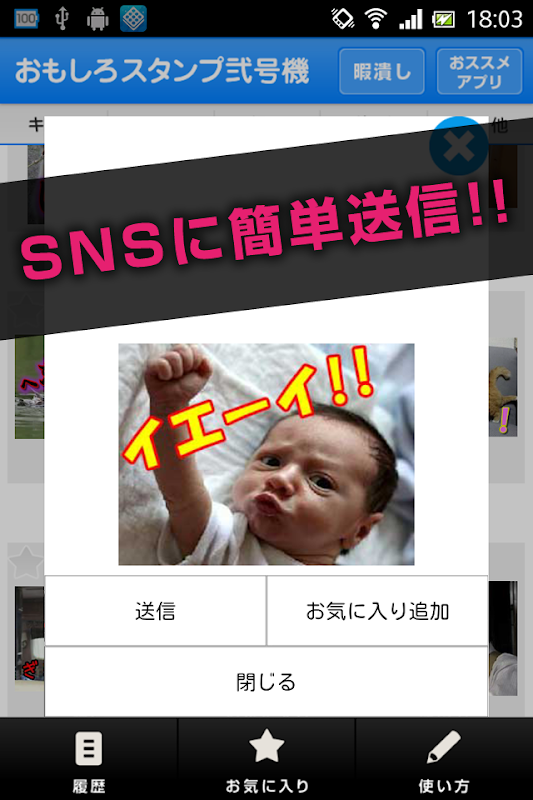 本アプリはLINEなどで使えるおもしろスタンプ送信アプリです。