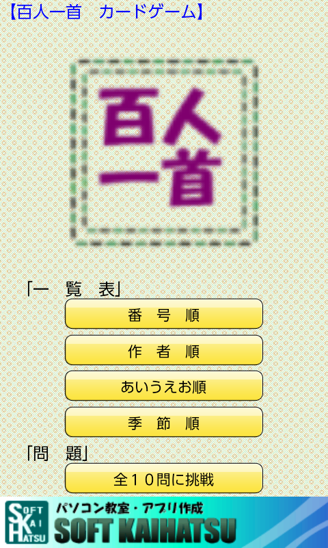 É um aplicativo para aprender diversão Hyakunin. Será exibido e você o tempo para responder a pergunta, eu fico motivado