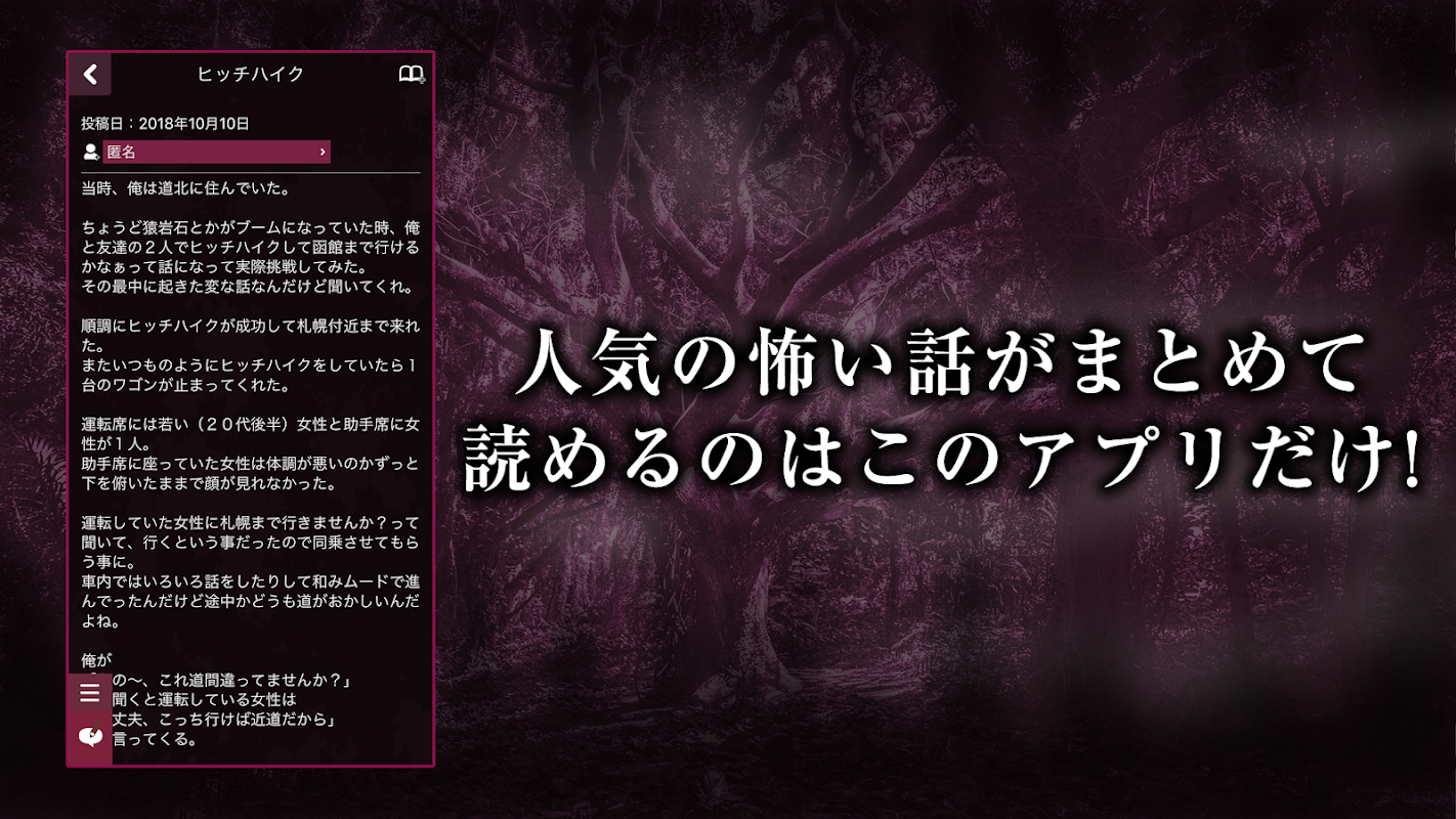 ユーザー投稿型 怖い話アプリの決定版!!