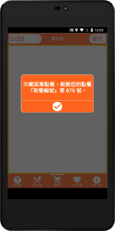 使用 ScrollBox 元件製作 速食菜單 內容,應用 REST 及 JSON 上傳 點餐資料,整合 訊息推播 功能,即時將 虛擬取餐單號 推播至用戶手機端。