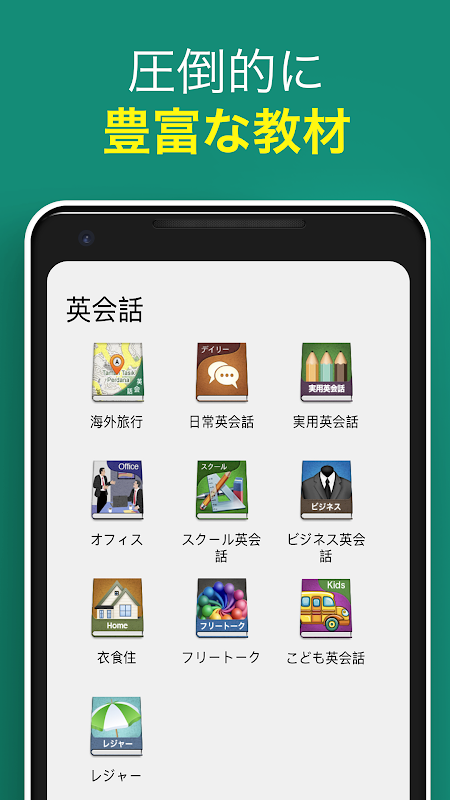 Um aplicativo de conversação em inglês que você realmente pode aprender! Abundante material didático com mais de 3000 frases, prática repetida de frases baseada na teoria da curva de esquecimento. Nós prometemos que suas habilidades de conversação em inglês serão "estabelecidas".