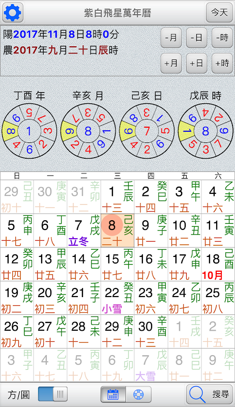 ● A exibição inclui: data em que Zibai voando estrelas, calendário solar, lunar, termos solares o tempo de transferência, de dossel.