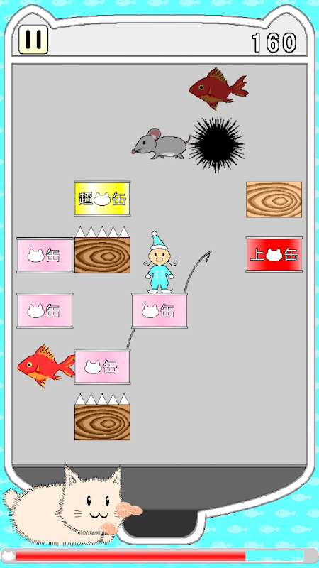 上から降ってくる缶やねずみをタッチして、餌に変えてあげましょう。