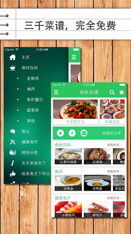 拥有中国最全的菜谱,包含中外菜谱分类200多个。另拥有人群分类和疾病调理的药膳食疗分类。这里只有你想不到,没有你找不到。每篇菜谱提供详细做法,用料,营养及说明。