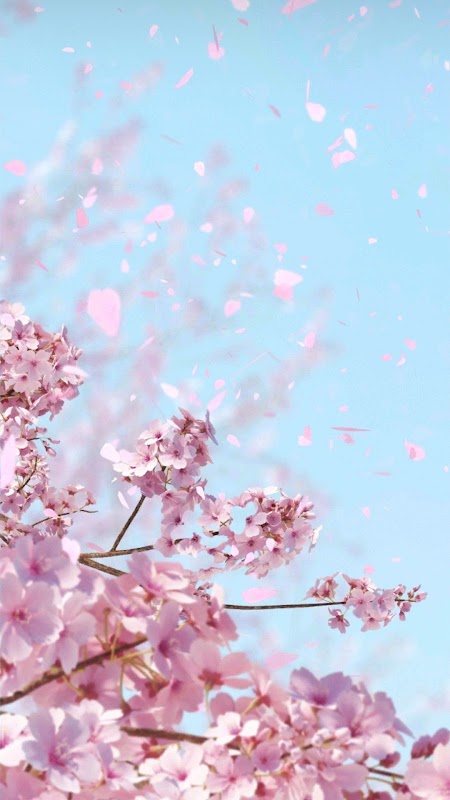 Este é um belo papel de parede ao vivo de pétalas de flor de cerejeira flutuando ao vento.