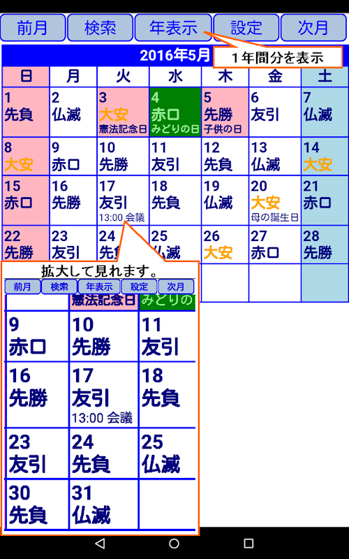 色々カレンダーFree(2030年までの六曜と祝日付き) 5.2