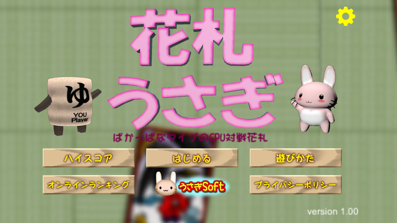 札合わせの花札です。うさぎさんと1対1の勝負です。3回戦か8回戦か選べます。