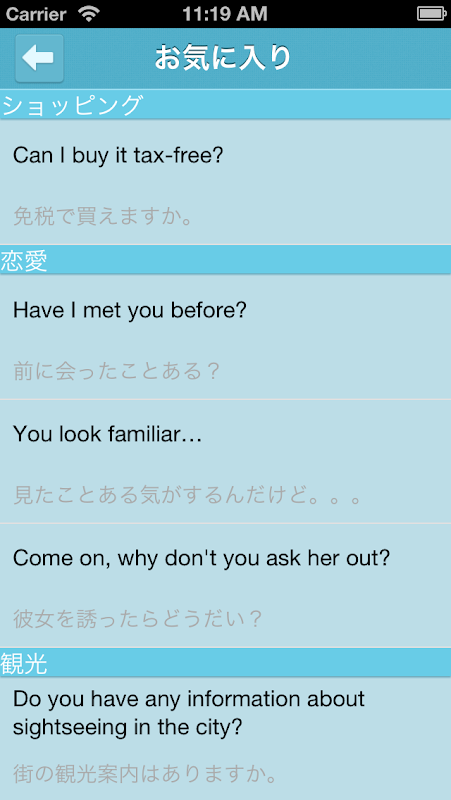日常生活、恋愛、ビジネス、空港、ホテル、観光などのような場面で頻繁によく使う会話が含まれているので、どれもやさしくて使いやすいアプリです、早速使ってみてください。