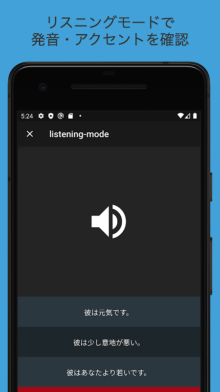 当アプリは全く英語が聞き取れない学習者がネイティブの会話を理解できるようになるために、レベル別に問題を配置、基礎的なリスニング力が身につくよう、独自のメソッドでアプリを作成いたしました。
