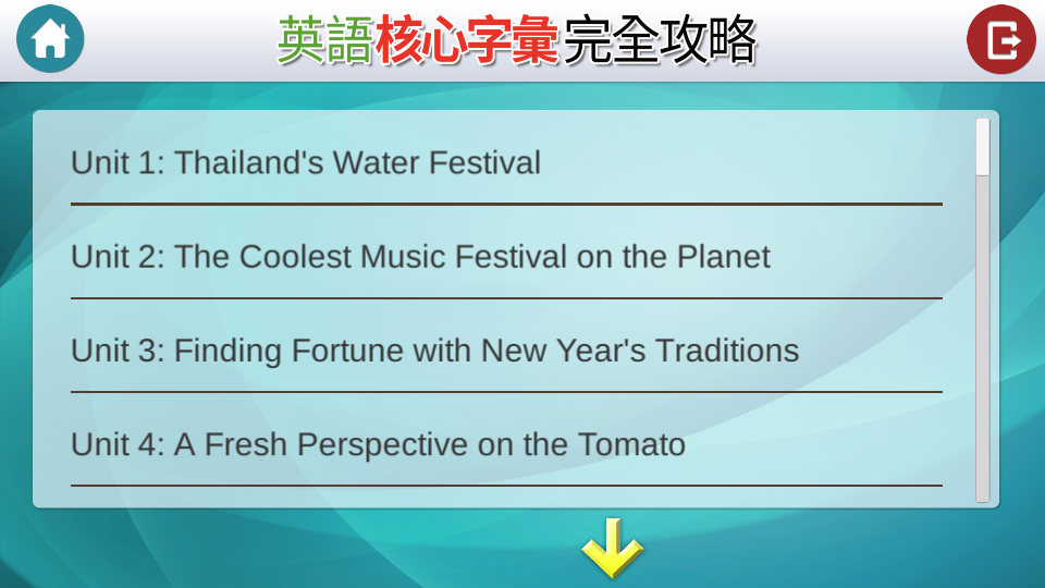 本支app共含35篇主題多元的文章,文章中涵蓋學測歷年常考字彙;依據大考中心「高中英文參考詞彙表」2OOO~45OO 選字,符合升大學考試需求。文中出現的每個重要字彙均輔以例句幫助理解用法。不僅可透過閱讀範文認識單字,亦能由單字理解範文,雙管齊下!無論文章或例句,點選即可聆聽由專業外師錄製的正確發音。
