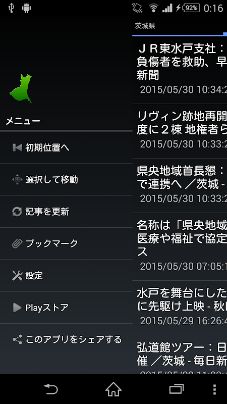 App que lista por região de Ibaraki Notícias Ele irá listar as notícias locais em Ibaraki Prefecture. Ele é listado pela cidade.