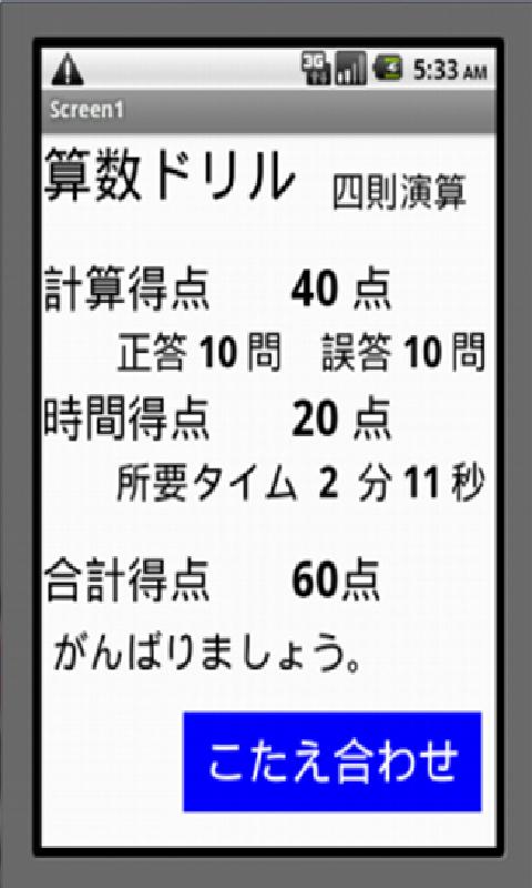 8.得点表示画面の [ こたえ合わせ ] ボタンタッチで解答一覧が表示されます。