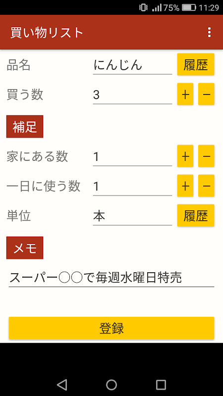 Há uma necessidade de escrever o mesmo conteúdo de cada vez de compras é memo de papel, mas elimina a necessidade de entrada é possível reutilizar o conteúdo anterior e usar o aplicativo.