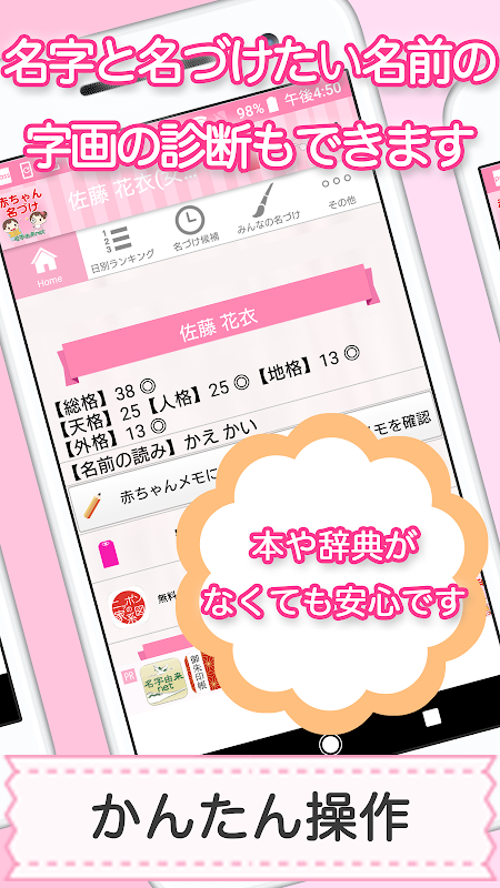 Basta digitar o nome e o sobrenome que deseja fornecer e você poderá entender facilmente o significado dos traços e kanji. Além disso, apenas digitando o sobrenome e pesquisando, você poderá descobrir o sobrenome e um nome com bons traços entre dezenas de milhares de nomes. Este aplicativo pode ser usado como referência na hora de nomear um bebê.