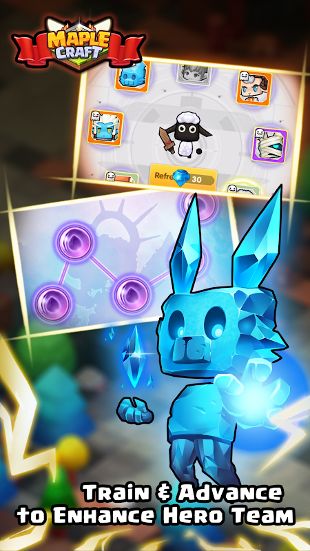 2.四大阵营,超百位不同动物英雄,方块化Q萌的角色设计,这一切只为让玩家挑选最强6位英雄组成的精英小队,打败统治黑暗的邪灵,净化大陆