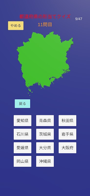 Você pode aprender sobre as prefeituras do Japão respondendo a um teste para adivinhar o formato de cada prefeitura e visualizando informações como população e área.