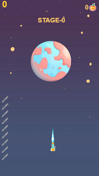 击中苹果,取得苹果币能复活一次,组建自己的钢铁兵器库。小心别碰到别的刀或障碍!