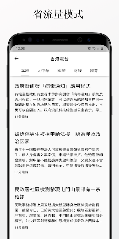 省流量模式 - 在沒有WiFi時,只加載純文字新聞,用戶點擊加載圖片,避免消耗流量