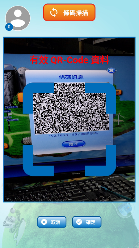 1.『條碼掃描』經由掃描 QRCode 條碼選擇連線寶盒伺服器。