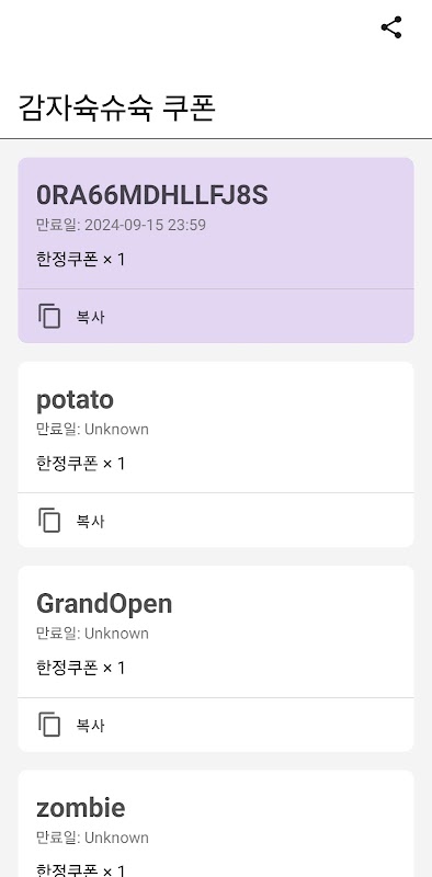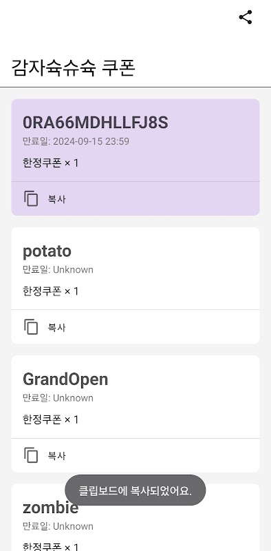 Você pode verificar e copiar o cupom “Gamja Shukshu Shuk”.