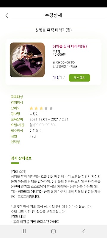 Os serviços de registro, reserva e pagamento do programa Gangnam Healing Center (COEX, Gaepo) são fornecidos de forma simples e rápida.