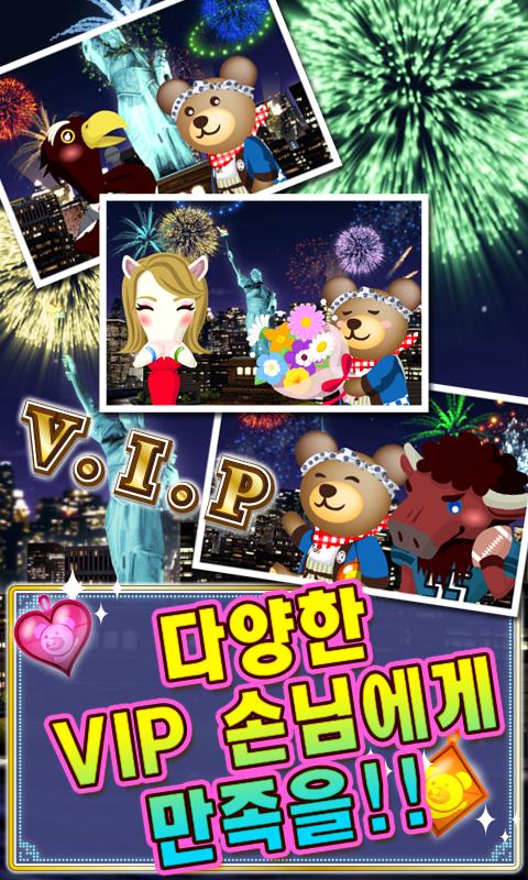 많은 VIP를 만족시키고 새로운 불꽃을 개발해 가면 곰돌이의 명성도 높아질 거예요!
