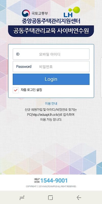 공동주택 관리교육 사이버연수원은 LH한국토지주택공사 중앙공동주택관리지원센터 입주자대표회의 운영 및 윤리교육을 지원하고 효과적으로 관리하는 통합 러닝 플랫폼입니다.