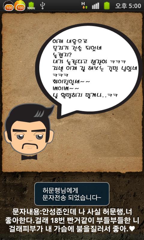 '안성준인데 나 사실 허문행,너 좋아한다. 니 쌍판때기가 헐크호건 호박찍기에 14번 찍힌 딸러맨