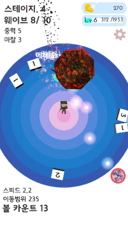 ★네번째로, 빠른 회수 버튼이 있는데요. 이걸 터치하면 공이 빠르게 회수가 되니, 더 이상 깨뜨릴 불럭이 없을 경우, 과감하게 눌러주세요.