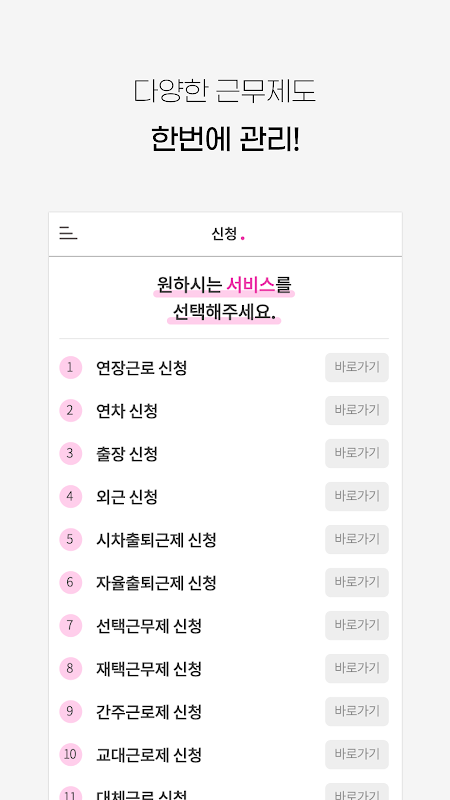 O gerenciamento de horário de trabalho é um aplicativo certificado pela Korea Communications Commission, e você pode gerenciar o gerenciamento de deslocamento e as informações fora do escritório com um aplicativo móvel.
